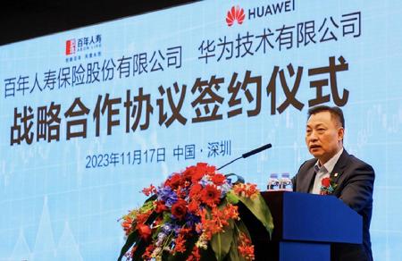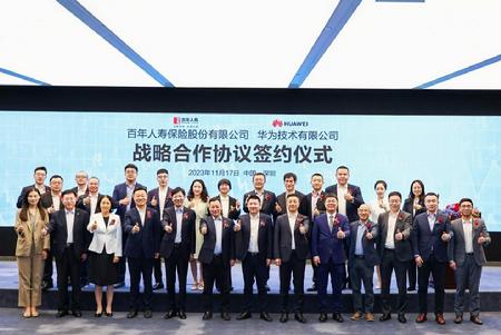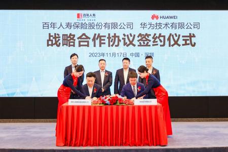 百年人寿党委书记、董事长王新浩对双方未来的合作充满信心。他表示近年来保险业在数字化和科技创新的浪潮中发生了翻天覆地的变化。云计算、大数据、人工智能等先进技术的应用,正在推动保险行业迈向更高的发展阶段。刚刚结束的中央金融工作会议中,明确提出要做好科技金融、绿色金融、普惠金融、养老金融、数字金融五篇大文章,并首提“金融强国”发展目标,要求保险业要积极发挥经济“减震器”和社会“稳定器”功能,聚焦重点客群,开展特色化、精细化、差异化经营,这些新变化、新要求、新使命对整个金融保险行业、对百年人寿未来的发展都提出了更高的要求。双方此番携手合作,将充分发挥百年人寿在保险行业的丰富经验与华为在科技领域的技术优势,协同创新、互利共赢。百年人寿希望借助华为先进的数字化应用技术为公司未来数字化建设打下坚实基础,加快公司数字化转型进程,助力百年人寿践行“金融报国”的社会责任,朝着实现“金融强国”的伟大目标不断前进。
