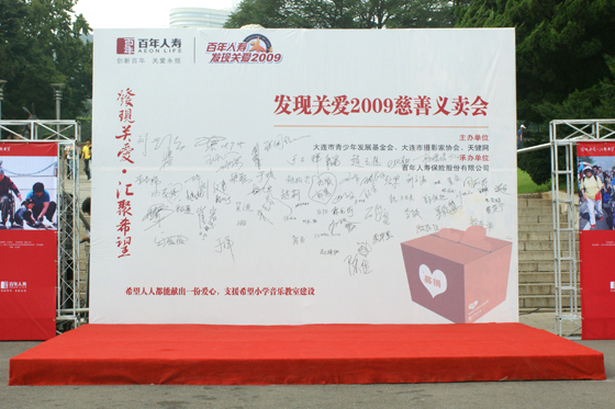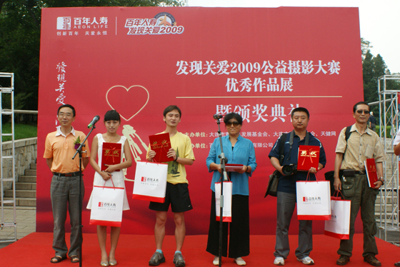 7月24日~26日,“百年人寿?发现关爱2009公益摄影大赛”公益影展活动在大连市劳动公园狮子广场浓情举行。充满关爱之情的精彩摄影作品吸引了超过三万名市民观展,同时举行的爱心义卖活动也得到了市民的热情参与,感动和关爱在这里温情汇聚。