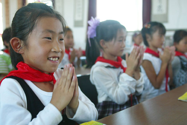 学生们早已端坐整齐,期待有电子钢琴伴奏的音乐课的开始