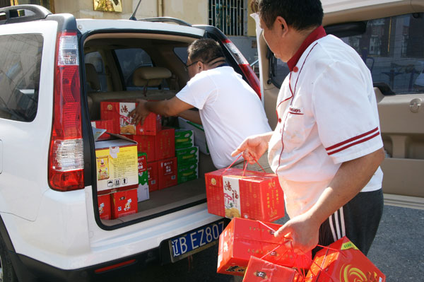 慰问品都是老人们喜欢的食品